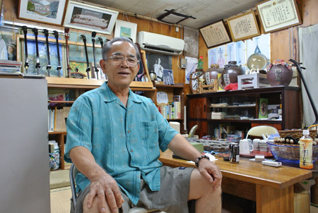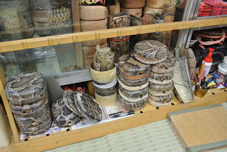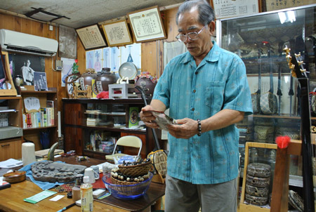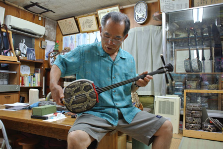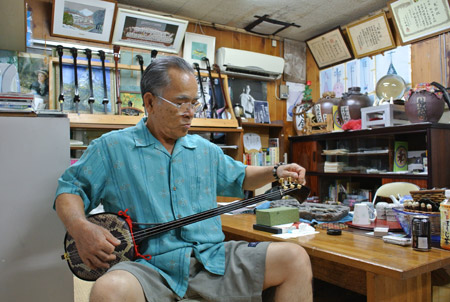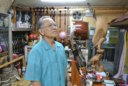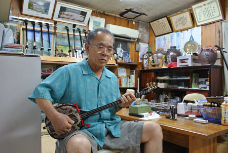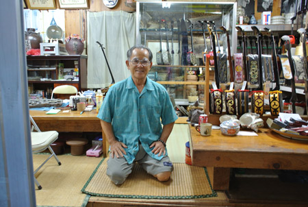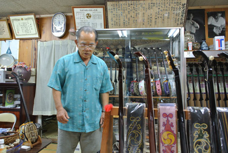 お店を‥‥というか、三線の楽器をつくる人を、です。