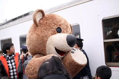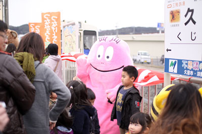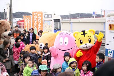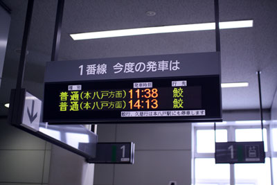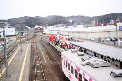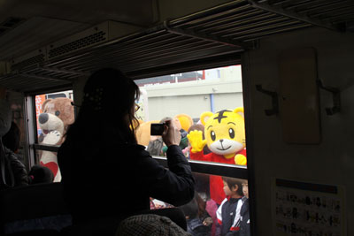 しまじろうくんたちに手を振り、久慈駅を出発。
