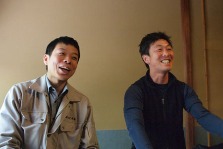▲大工の籏さん(左)と、左官の田中昭義さん。