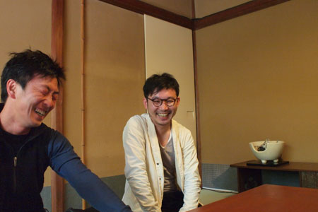 ▲表具師の中島匠さん(左)と、植木屋の小笠原哲さん。