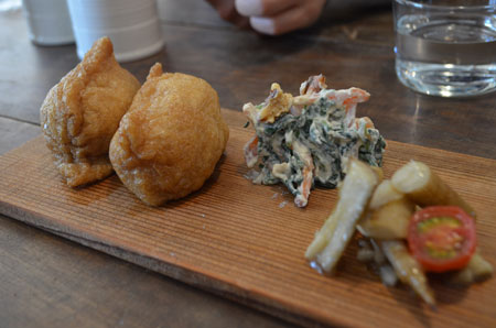 ![]() ▲おいなりプレート どっしりとしたおいなりさんが2つ。 これだけでもきちんとお腹がいっぱいになります。 |