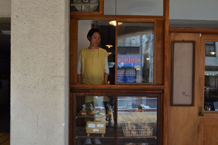 ![]() ▲この窓のところで、 テイクアウトができます。 藤田さんに立っていただきました。 |