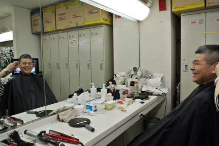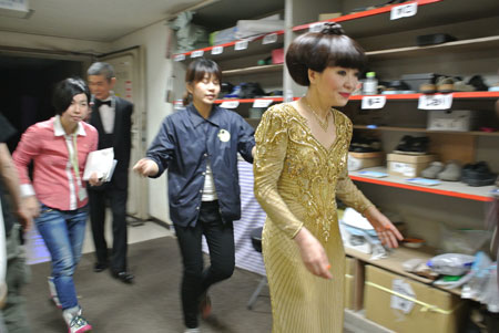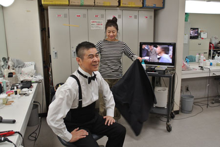 ▲メイク中。清水ミチコさんと話しています。
