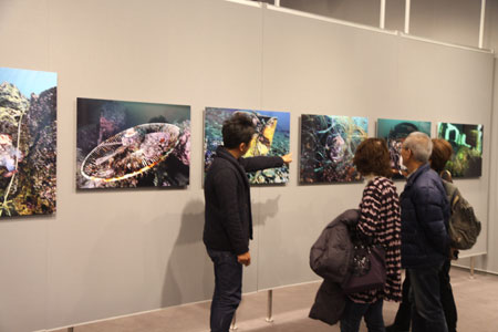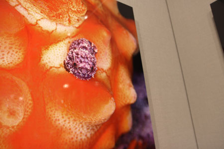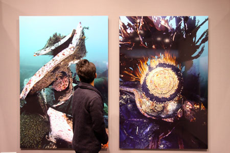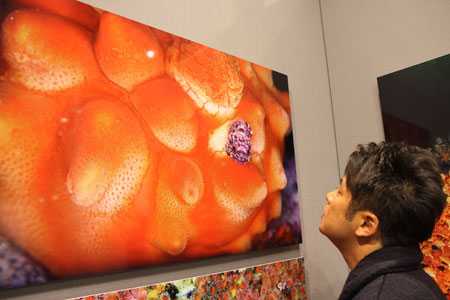 | 鍵井 | 実はこの展示会は、 9月に仙台でも開催するんですよ。 ぼくは基本的に岩手県宮古市で潜ってるんですけど、 仙台での展示が決まったこともあったので、 震災後にはじめて、女川の海に潜ってみました。 岩手県とはまったく違って、 この鮮やかな赤は、ホヤなんですよ。 ホヤの群生。 |