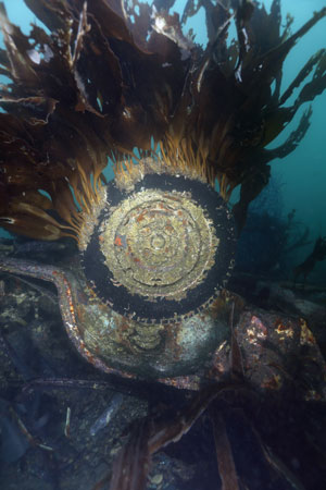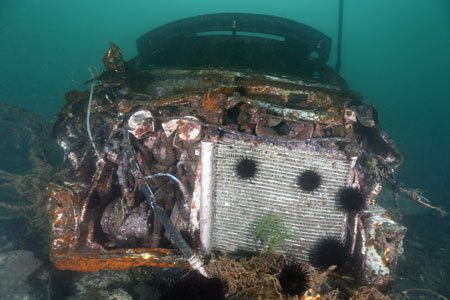 | 鍵井 | そうです。 タイヤに天然のコンブが。 浅瀬にひっくり返っている車のタイヤで、 ぼくは2年くらい観察してたんですが、 こんなに海藻が生えたのは初めてでした。 |