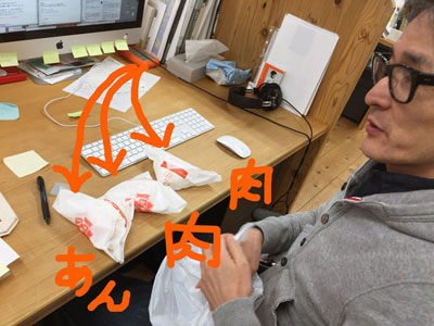 添えられた「肉、肉、あん」の文字がなにかというと、