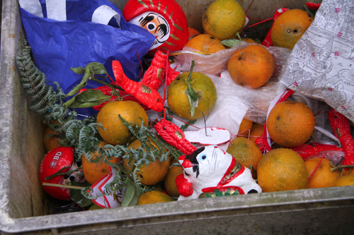 紙袋の他にしめ縄や縁起物をごっそり抱え、
