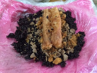おにぎりの中は、肉でんぶ、油條、ごまと シンプルですが、ほんとうにおいしいです。 |