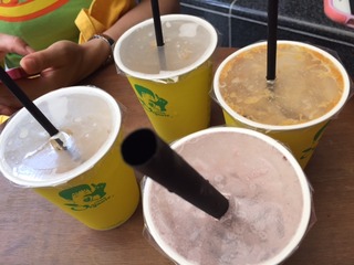 街歩きのドリンクは、 杏仁茶、豆乳、タピオカミルクティーが おすすめです。 |