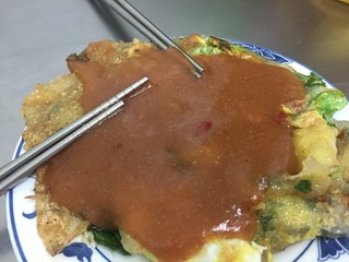 「牡蠣のオムレツ」のほうは、 民生西路ぞいにあるお店です。 こっちはイートインができるので、 「潤餅」をもちこんで一緒に楽しんでください。 |
