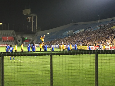 けっこう近いところに座るんですね、それぞれの応援団。