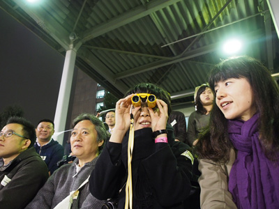 やみくもに双眼鏡をのぞき込む星野。