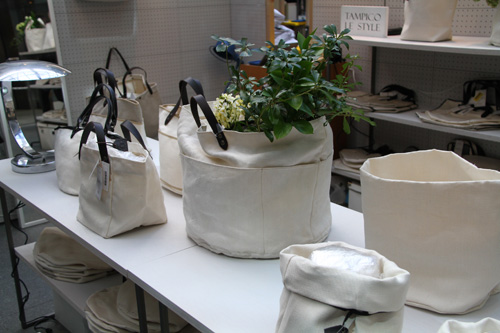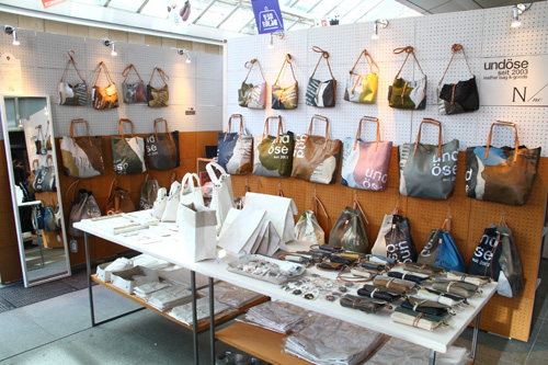 ▲直接手に取ることができる機会が少ないundoseのバッグがずらり。