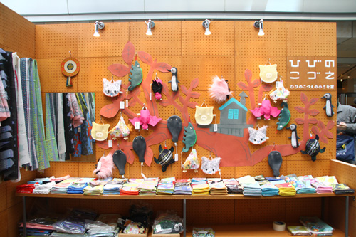 ▲「ひびのこづえの小さな家」の壁には、ディスプレイも兼ねた、