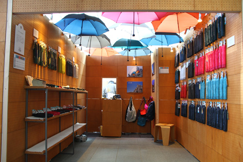 ▲ぷかぷかと浮かぶ傘がユニークな「mont-bellの傘の店」。