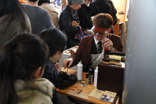 ▲「等々靴磨店」の山邊さんも大忙し。休憩とれてますかー?