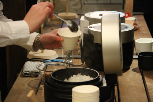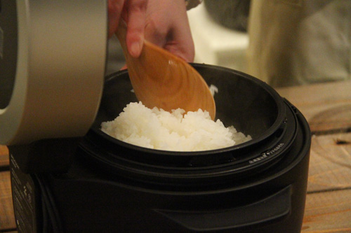 6台の炊飯器はフル稼働。ご飯の粒が立っている!