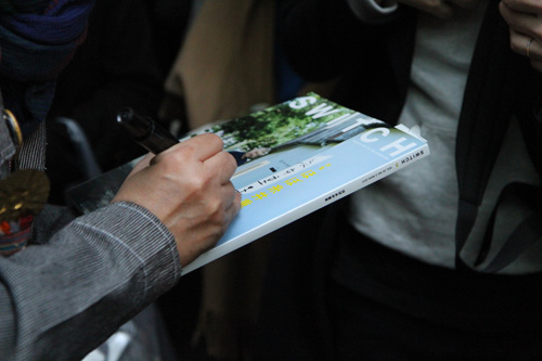 (まだ購入前の)本にもサインをしてしまいましょう。
