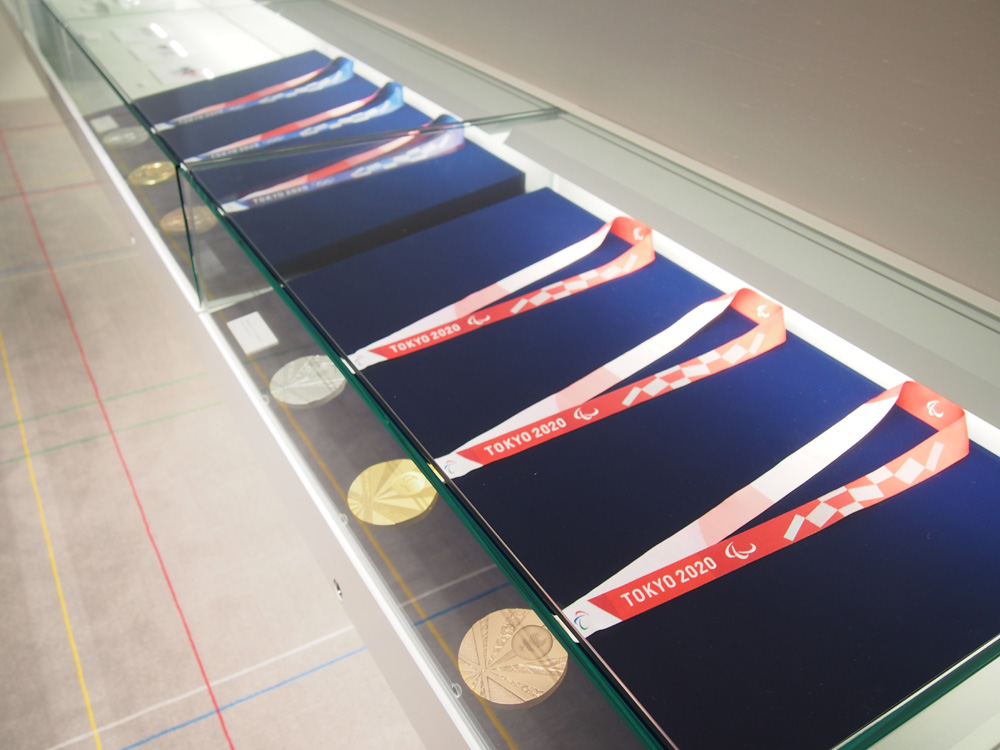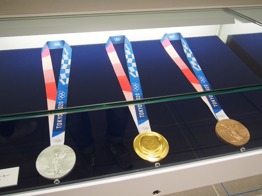 飾られることになっている、東京大会のメダル。