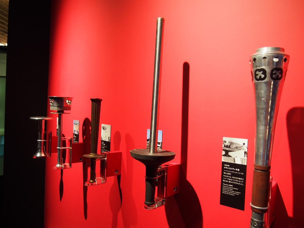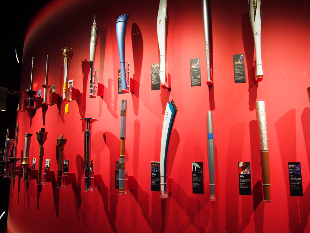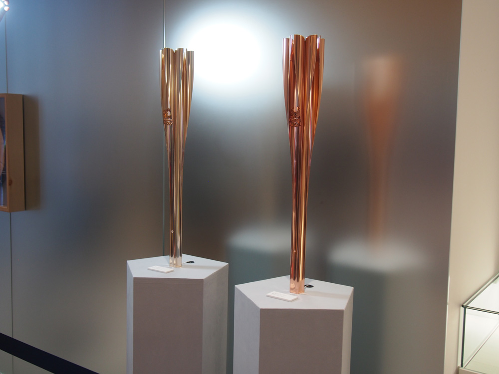 聖火ランナーが持つトーチも飾られています。