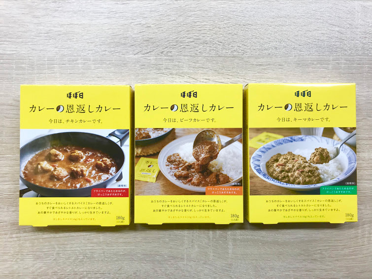 ・カレーの恩返しカレー[チキン・ビーフ・キーマ]( 3つで2,646円 税込)