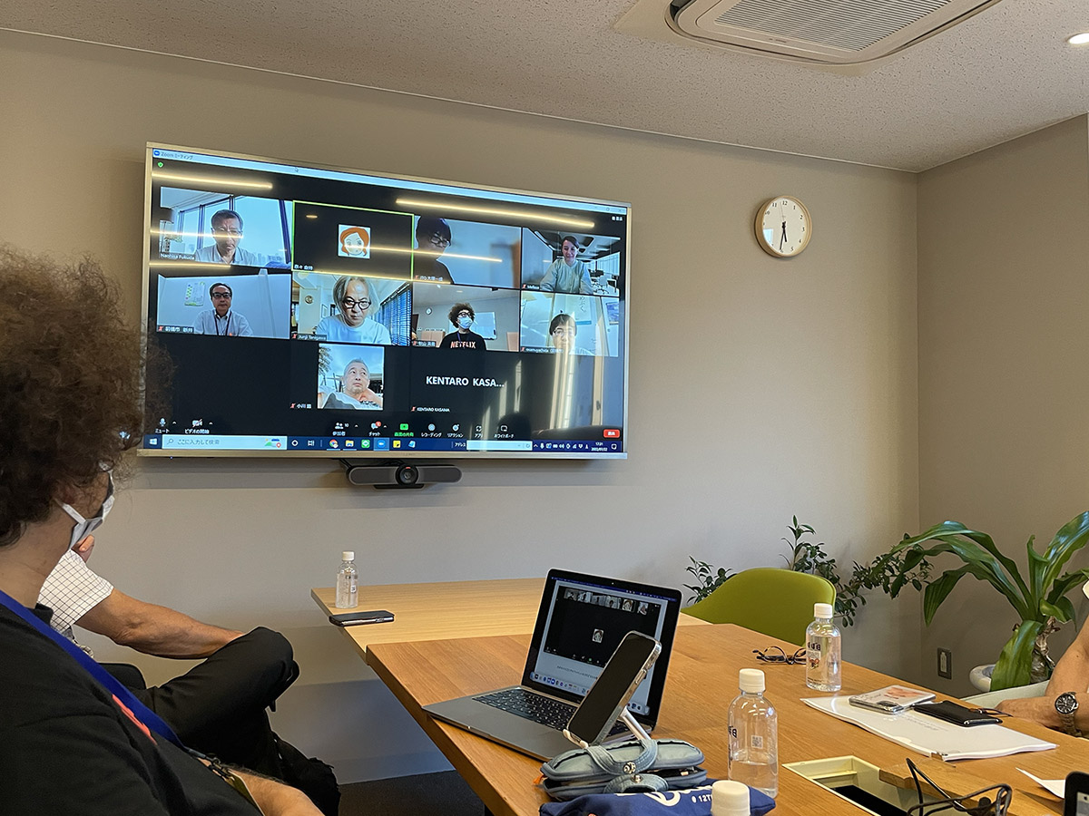 ▲ある日のミーティング。東京と前橋をリモートでつないで会議します。