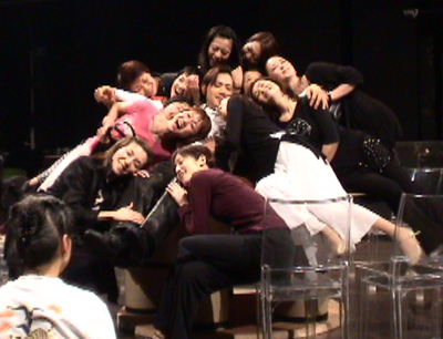 ‥‥‥‥ これを16人分。 すべてが新鮮で信じられるエピソードになってます。 たしかに、さすがのグイド・コンティーニでも、 こんな女性たちが目の前に現われたら、 まとめられるはずがありません。 それどころか‥‥ねえ。 こうして俳優それぞれが、 自分の役に具体的なイメージをもって、 デヴィッドがイメージする「序曲」が生まれます。 去年秋の稽古場でも、 こういう時間がありましたが、 内容は少し変化しています。 いま、新しくこの場で演出されているのです。 新しくこの稽古場で、ということが、 俳優たちのエネルギーを引き出しているようにみえます。 女性たちがバラバラにまくしたてる声が、 いつのまにかコーラスへと変わっていきます。 個性の混沌から調和へ。 その美しさ、なんて言えばいいんでしょう。 それが『ナイン THE MUSICAL』の最初の見せ場です。 ![]() (つづきます!)