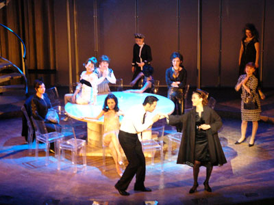 ■ ■ ■ ■ ■ ■ ■ ■ ■ ■ ■ ■ ■ ■ ■ ■ 第十六回 『ナイン』の核心“イノセント”! ■ ■ ■ ■ ■ ■ ■ ■ ■ ■ ■ ■ ■ ■ ■ ■ 大阪公演はみなさんのおかげで盛況です。 カーテンコールの大拍手はもちろんのこと、 お寄せいただくメールが勇気になり、力になります。 ほんとにほんとにありがとうございます。 休演日返上で、追加公演。 さあ大阪は、いよいよ後半です。 きょうは1960年代という時代と、 『ナイン THE MUSICAL』の関係をお話しします。 ●'60年代というキーワード 衣裳やヘアメイクが表現しているとおり、 『ナイン THE MUSICAL』の世界は、1960年代です。 衣裳のつくりかたは、 「去年はこんな感じでした!」の回で ほんの少し触れました。 ヘアメイクに関してはこうです。 ヴィッキー・モーティマーの詳細な資料をもとに、 昨年秋の公演で演出家の信頼の得た鎌田さんが、 日本のキャストに合わせてプランニングしました。 鎌田さんは、昨年秋からさらに今回、 また新たなイメージを作っています。 演出家からのキーワード、「'60年代」をもとに。 モチーフとしているフェリーニ映画『81/2』が、 '60年代を代表する傑作であるということ以上に、 あの時代の映画が伝えた鮮烈なテーマを、 演出家デヴィッド・ルヴォーは『ナイン』に 込めています。 ●映画『甘い生活』の時代 それは映画監督で言えば、 ヴィスコンティやミケランジェロ・アントニオーニ、 俳優ならアラン・ドロンやヘップバーンたち、 音楽ではニーノ・ロータが大活躍した時代です。 デヴィッドはこう説明します。 「ローマの街並やカフェの風景が 世界じゅうに反響をもたらした フェリーニの映画『甘い生活』の時代、 その時代を現代から見るとき、 イノセントで、アナーキーなきらめき、創造的で、 大胆な性の時代に映る」 映画『甘い生活』はカンヌ映画祭グランプリに輝き、 アカデミー賞2部門を受賞した作品です。 青年ジャーナリストの役のマストロヤンニが 初めての主演でした。 ローマを舞台に気まぐれで奔放な男女関係を描き、 現実と幻想が一体化する構成は、『81/2』や、 そして『ナイン』にも通じるフェリーニの世界。 女優アニタ・エクバーグがトレビの泉に入り、 水と戯れるシーンが象徴的でした。 ![]() 人生は芸術を模倣するという言葉がありますが、 '60年代に作られた映像世界によって、 現実の生活が映画を模倣するようになりました。 『甘い生活』で言えば、 「ヴェネート通り」を疾走するパパラッチの姿は、 フェリーニがこの映画でつくり出したものです。 デヴィッドは、「映画のようにうつろいやすい、 つかみどころのなさを『ナイン』に与えた」と言います。 それはたとえば、半透明のアクリルに囲まれた 舞台セットがそうかもしれません。 また、グイド・コンティーニの頭のなかに 女性たちが登場するとき、 天国までつながるらせん階段から降りてくる演出も。 このときのデヴィッドの言葉が印象的でした。 「彼女たちは、ハイヒールを履き、 '60年代ファッションに身を包み、 ゴージャスで、ファンタスティックでセクシー。 足下も見ず、後悔もせずに降りてくる‥‥」 ![]() 女性はこうあるべきということに縛られない、 自由な女性たちのイメージがそこにあります。 『ナイン』に登場する女優たちが、 どの現実よりも美しく輝いてみえるとすれば、 それは'60年代の映画がそうであったように、 彼女たちの本来の姿が演出されているからだと思います。 先日、あるインタヴューでデヴィッドに 質問をしたことがあります。 Q『ナイン』は各都市で上演するごとに、 それぞれ違う輝きを放つ作品だと言われますが、 日本の『ナイン』はどう違うんですか? デヴィッド 「『ナイン』という作品は、 大人の男女の洗練された煌めきと、 作品の核にある無垢なものの 緊張関係でできてると思う。 それが日本という文化のレンズを通してみると、 ほかの都市ではそれほど拡大されなかった “無垢な部分”が拡大されてる。」 “無垢な部分”、それは'60年代の映画が魅せた、 女性たちの輝き“イノセント”のことです。 (つづきます!)