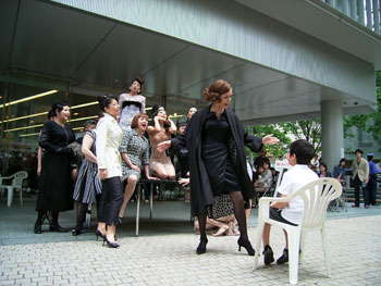 ■ ■ ■ ■ ■ ■ ■ ■ ■ ■ ■ ■ ■ ■ ■ ■ 第二二回 PRイベントの胸の内! ■ ■ ■ ■ ■ ■ ■ ■ ■ ■ ■ ■ ■ ■ ■ ■ 22日の日曜日、 東京公演の劇場アートスフィアで、 舞台の建て込みが始まりました。 そして六本木ヒルズでは、 『ナイン』のキャストが全員集まってのPRイベント── あらためて思います。 このカンパニーのキャストは、ほんとにすごい。 作品への愛情がすごい。 ケガがないように、本番に支障をきたさないように、 でもイベントは盛り上げたい。 スタッフのいろんな心配を吹き飛ばしてくれたのは、 『ナイン』をもっともっと知らせたいという、 このキャストたちのエネルギーでした。 ![]() イベントは先日の大阪公演中に急遽計画したものです。 にもかかわらず、キャストの全員参加が決定。 当日の朝までほかの仕事をしていた別所さんをはじめ、 ひとりひとり、スケジュール調整は 大変だったに違いありません。 しかも、キャストどうしで話し合って、 本番用の衣裳とヘアメイクで『ナイン』を伝えたいと、 企画も作ってくれました。 会場は六本木ヒルズのメイン広場に面した、 テレビ朝日ビル1階のイベント・スペース。 当日、朝から早くから来てくださった ファンのかたをお待たせしつつ、 スタッフによる準備と打ち合わせ。 キャストは本番同様のタイムテーブルで衣裳とメイク。 衣裳もメイクもきょうのために、 メンテナンスをし直して、会場に。 なんて強力なスタッフが支えてくれてるんだろう。 ![]() オープン・リハーサルを始めた13時すぎ、 すぐに人垣ができました。 遠くから見ていた人もこちらに近づいてきて‥‥ 早々に、盛り上がりの予感! 「オーバーチュア(序曲)」の一部を、 グイド(別所さん)の代わりに、 リトル・グイド(子役の向笠くん・樋口くん)による、 イベント用スペシャル・ヴァージョン。 このカンパニーで振付のアシスタントもしている 高塚いおりさんを中心に、 それぞれアレンジを考えて、動きを確認。 イベント会場内のピアノには、 リハーサル・ピアノの大隅一菜さん、 キャストとの呼吸ももちろんぴったり。 ![]() それから屋内でのメインプログラム、 リリアン(大浦みずきさん)とグイドのタンゴ。 大浦さんと別所さんのリハーサル── 「オーバーチュア」にしても、 「フォーリー・ベルジェール」のタンゴにしても、 『ナイン』のなかで本当に眩しい場面です。 それだけに、舞台以外の場所では難しいと、 キャストが戸惑ってももっともなところを、 みんな積極的に、よりよく見せることを 考えてくれました。 セットも照明もないイベント会場で、 「フォーリー・ベルジェール」を最後まで歌い、 踊ってくれたのです。 これは直前の打ち合わせのとき、 キャストのみんなが言い出してくれました。 本番で使う小道具もなく、 スペースも十分にとれないなか、 ピアノの大隅さんとひとことふたこと交わして、 キャストどうしの呼吸でGOサイン。 かっこいいでしょ。プロフェッショナルでしょ。 ![]() 出演者がこういう気持ちになってるイベントが、 成功しないわけがありません。 150席用意した椅子席は一杯。 ほとんどのかたには立ち見をしていただき、 ガラスばりの会場の外にも、 「ああ、これ、ミュージカルの‥‥」 というお声がちらほら。 六本木ヒルズ内はとくに警備が大変で、 なにをするにも、許可や申請が必要でした。 たとえば、ポスター1枚ガラスに貼るにも、 ガラスの内側から貼るのはOK、外側はNGとか。 日曜日の午後にできた人の山に、 警備の人も目を離せないようすでしたが、 じつは責任者のかたが、 いろいろ協力してくれました。 こうすると見やすいとか、 ここまで使っちゃっていいよとか。 さらに満員の会場内で整理にあたりながら、 お客さまの質問にも応対くださり、 「終わりのほうにまた歌いますよ、 これが一番いいからっ」と。 しかも公演のチラシ配りまで一緒に! いやあ、こういうことがうれしい。ほんとに。 リハーサルを見守ってくれてるときに、 きっとカンパニーのハートが伝わったんだと思うんです。 ![]() ![]() イベントは13時半からと16時からの2回。 基本的には同じプログラムで行いました。 会場内ではキャストがマイクを回しながら、 『ナイン』の話をしました。 みんな『ナイン』のことなら、いくらでも話せるんです。 1回目が終わったあと、控え室をのぞいてみると、 キャストどうしが反省会をしてるじゃありませんか。 それもトークの部分についてまで! 結局2回目もオープン・リハーサルを行い、 1回目は椅子に座っていたインタヴューも、 2回目は椅子なし、立ったままに変更。 時間を短くしようとして 質問事項を減らしたものの、 キャストみんなにちゃんと伝えたいことが あるものだから自然に時間が長くなって。 でもいいんです。 そりゃあ『ナイン』の魅力は、 ひとことじゃ、伝えきれないもの。 今週27日金曜日、いよいよ開幕です! (つづきます!)
