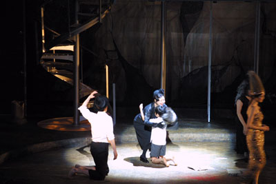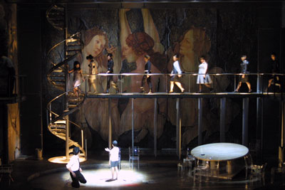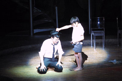 ■ ■ ■ ■ ■ ■ ■ ■ ■ ■ ■ ■ ■ ■ ■ ■ 第三一回 『大人になると。』 ■ ■ ■ ■ ■ ■ ■ ■ ■ ■ ■ ■ ■ ■ ■ ■ ![]() 映画館が大好きだったグイド少年が、 スクリーンの前に登場するところから始まる 『ナイン THE MUSICAL』のオープニング── そして最後の曲『Getting Tall〜Reprise』は、 映画監督グイドのシンボルである帽子を、 9歳のグイドが40歳のグイドに手渡す場面に流れます。 ![]() 演出家デヴィッド・ルヴォーが リトル・グイドを演じる子役たちに話しました。 「大切なのは、グイドだけを見てること。 そしてグイドの名前を呼ぶ。 1回では気づかせられないから、 2回目はもっと大きな声で呼ぶ。 うまく説得できれば、彼を死なせずにすむ。 はっきり教えてあげないと、 グイドは死んでしまうんだ。 だから自分も強くなってがんばる。 考えるのは自分のことじゃない、 グイドのことだけを考えて。 そうすれば、きっと正しく伝わるから」 小さな俳優にも大人の俳優と同じように接し、 演出するデヴィッド。 もしかしたら演出家がよく言いたくなりそうな、 「役に集中して」なんて、 あいまいな言葉は選びません。 具体的な場面の話だから、 演出家の言葉はとても具体的です。 それを受けるリトル・グイド役の樋口くんも向笠くんも、 打てばひびく、素直に表現する力をもった俳優です。 デヴィッドの言葉がふたりの若い俳優のなかで、 どんなふうに生きてるかは、 「第二一回 ナインの主役は。」の回をどうぞ。 あの年齢でデヴィッド・ルヴォーの演出を受けたら、 このあと彼らと仕事する演出家は大変です。 それに共演する女優さんも。 彼らはすでに、さまざまな女性を知ってるし。 9歳のグイドが40歳のグイドに語る歌、 『Getting Tall』のあとからは、 デヴィッド・ルヴォーならではの演出世界です。 デヴィッドが創り出した「愛」の世界が、 完結していきます。 リトル・グイドに舞台上のすべての権利を与え、 ぼくたちに魔法を見せてくれます、 別世界へつながる二重螺旋の階段を使って。 ![]() リトル・グイドは舞台上に、 ルイザをのぞくすべての女性たちを登場させます。 40歳のグイド・コンティーニにとっては、 過去に出会った女性たち、 9歳のグイド少年にとっては、 これから出会う女性たち。 ひとりずつリトル・グイドに小さく挨拶します。 『ナイン』を彩る15個の宝石が、 それぞれきらり、きらりと輝きながら‥‥ このとき、女性たちとグイドの物語が、 次々とリセットされていくように ぼくには見えます。幸福なリセット! 「サン・セバスチャンの鐘」のとき、 教会の儀式で祝福を与えてもらえなかった スパのマドンナに膝まずくと── ![]() 拒絶された思いを残して 天国に行ってしまったママに会うと── ![]() 15人の女性たちとの過去を、 幸せな記憶に変える魔法のそのあとで、 15色の輝きすべてを備えた女性、 妻ルイザとの関係が最後の最後に残ります。 そして‥‥ さて、2005年の『ナイン THE MUSICAL』は、 いよいよ最終ラウンド、残り6ステージです。 (つづきます!) |