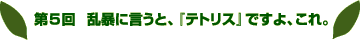 乱暴にいうと、『テトリス』ですよ、これ。 |
