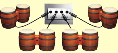 ▲"タルコンガ"を4つ使用する場合の接続図はこのとおり。