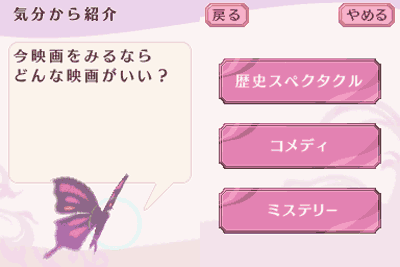 2 ヒロイン診断 こちらもランダムに5つの設問が出され、 自分の「ヒロインタイプ」を診断してくれます。 そのタイプにあった作品を選んでくれるんです。