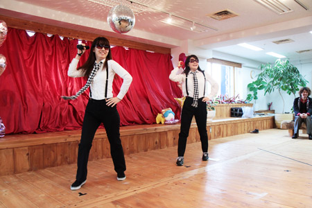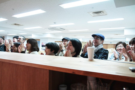| とくにアクシデントもなく無事に練習してきた このチームがトップバッター。 社内の体力測定で運動神経抜群なことが判明した久村と アイドル好きの掛け持ちりんりんのコンビは 最初に踊ったときの、 あのぎこちない感じは打破したのか?! |