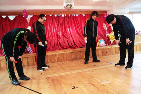 | こちらは練習の回数こそそこそこ多かったものの、 平均年齢、37歳のおっさんチームに ダンスが難しいこの曲はかなり厳しく、 一度踊るとグッタリな状態に。 でも、そこは練習量でカバー。 |