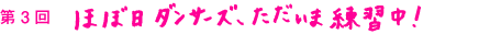 | なかなか時間が合わなくて集まれなかったものの 集まったときはものすごい団結力で 実力をつけてきたチーム。 とにかく「笑顔」で踊るその姿は 見ているこっちまでなんか笑っちゃいます。 あ、そうそう。 ここも、3人で踊っていることを活かした 独自のアレンジ加えてますよ。 |