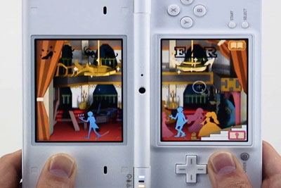 | ふんふん。おっ、すごい。 3Dだ。奥行きがある。 あ、なるほど、こうDSiを動かすと、 ちゃんと角度が変わるんだ。 |