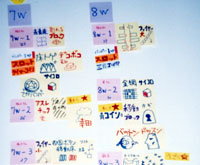 ![]() 壁に貼りだされたアイデア・メモ ![]() |
