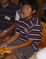 「優勝を狙います!」 (子・M智充くん) ![]() 唯一のお母さん選手・M啓子さんと 智充くんのペア ボロボロになった攻略本を試合直前まで放さなかったMチーム。 |