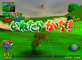 ![]() ボールが川に落ちた瞬間、元気よく 飛びだしたのはプクプク。 ウオーターハザードは1打プラスさ れるため、かなり痛い