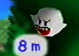 ![]() 風は8メートルの強風。ショットの 際はこの風を計算に入れないと、 ボールはあらぬ方向へ |