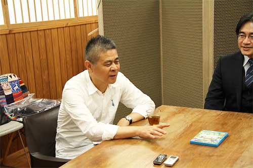 | 宮本 | それ、ぼく、 テレビ局の現場にいたら言いそうやね。 「ここに花ぐらい置かへんと、 カラーの意味がないやろう」って(笑)。 |