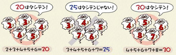 数個ある数字からひとつを消した合計をタシテンにしたり、