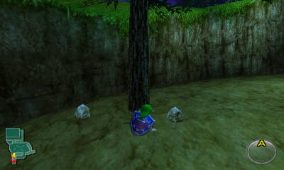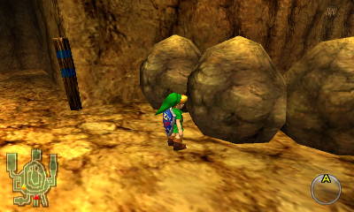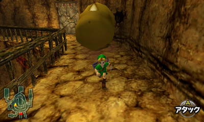 破壊できる茶色(?)の岩を破壊して進みましょう。