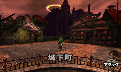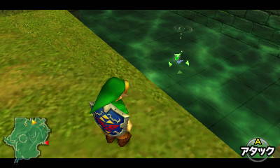 ゼルダ姫がお堀に何かを投げ込んだ様子。