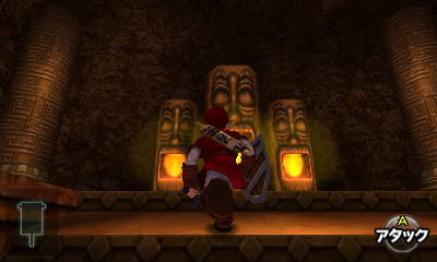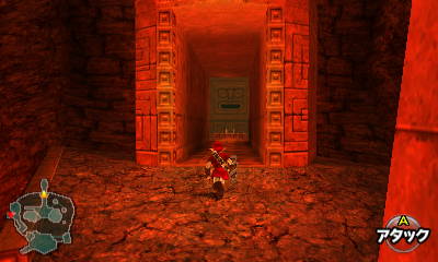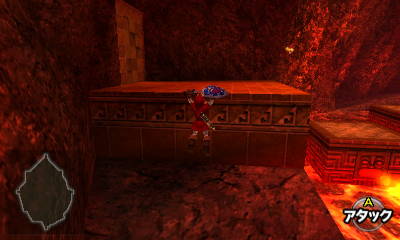 部屋の左側のほうの足場をジャンプで渡っていきましょう。
