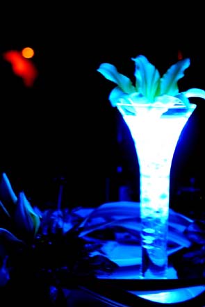 2種類の液体をビ−玉入りのグラスに注ぐと、