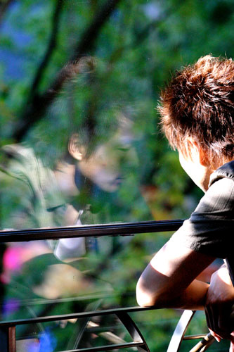 ここバンクーバーのめっちゃ古〜いホールの窓ガラスに
