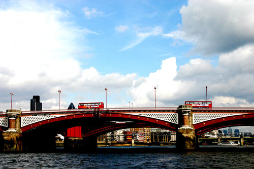 観光船に乗って河を下っていると、赤い橋の上を