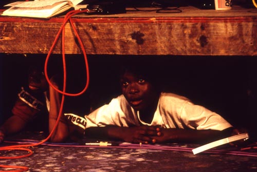 階段ステージ上の段差から、ビーニーマンのライヴを